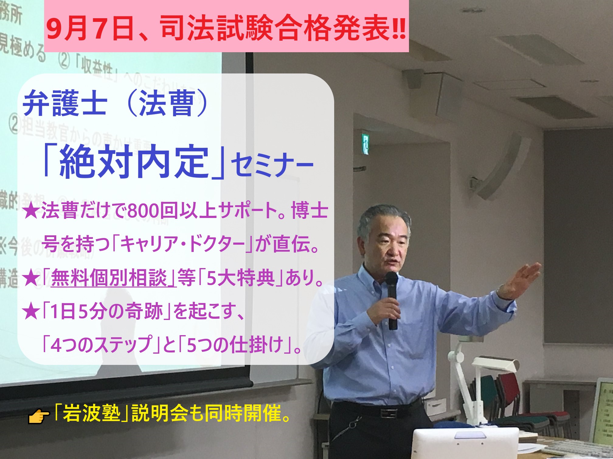 今回のセミナーの対象は、あくまで今年度試験受験者、あるいは予備試験も